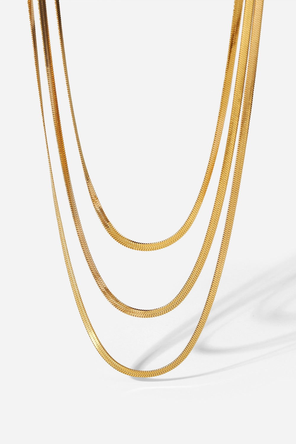 Pair this triple-layered snake chain necklace with a low-key T-shirt for a casual aesthetic.